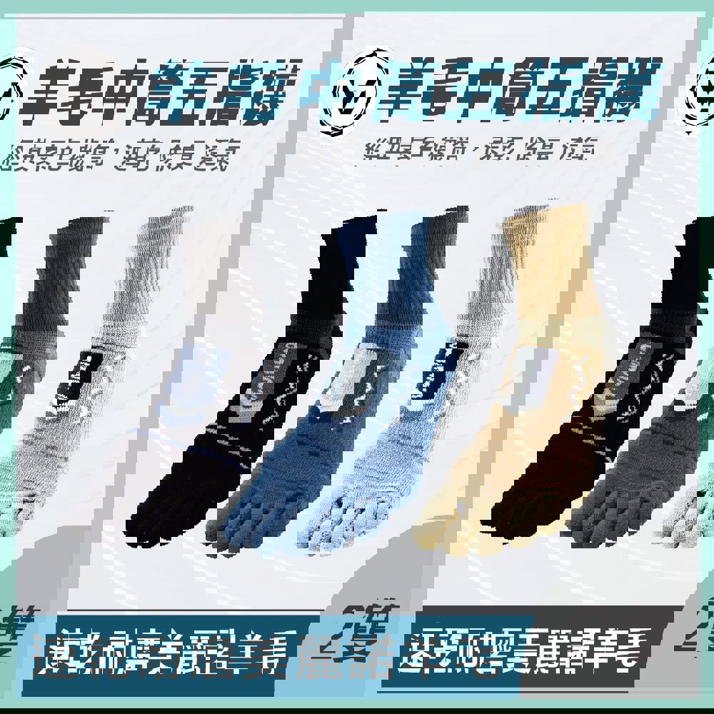 【經典中筒】極致速乾美麗諾羊毛五趾襪-中筒 | 2雙 M/L/XL