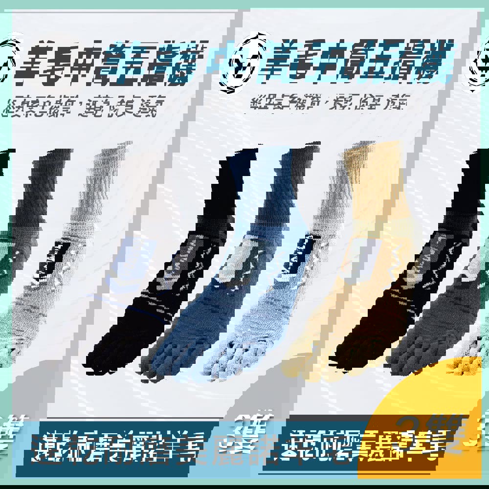 【經典中筒】極致速乾美麗諾羊毛五趾襪-中筒 | 3雙 M/L/XL